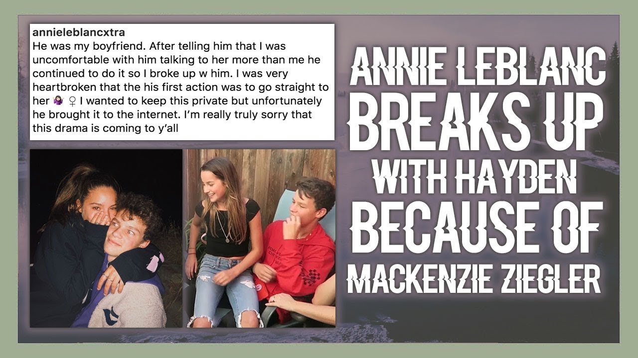 On Tuesday I said I would talk about this stop so hear we go. If you did not know Hannie is the abbreviation of Hayden Summerall and Annie Leblanc relationship, and Ashannie is the abbreviation of Asher Angel and Annie Leblanc relationship. I am not to sure why Hannie got broken after a year but people say it was because Annie was jealous of Hayden being with Mackenzie Ziegler. Here is a post.